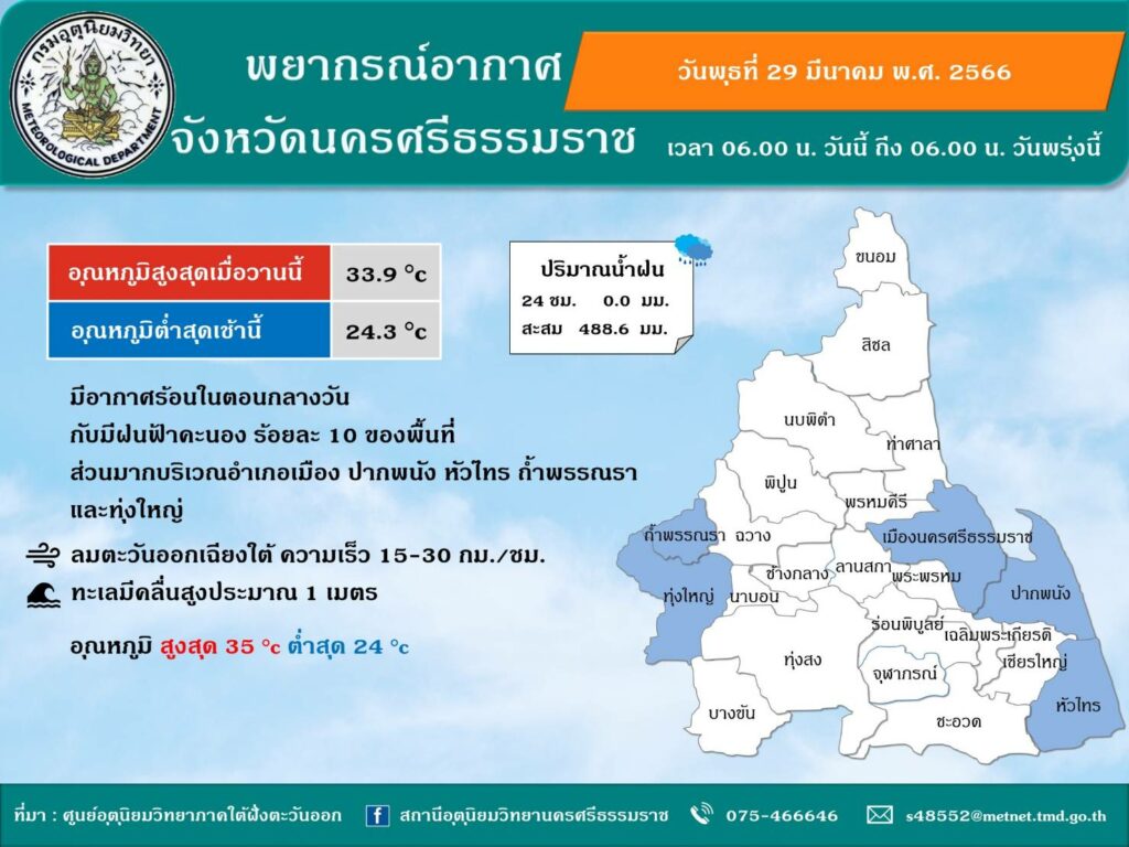 พยากรณ์อากาศประจำวันที่ 29 มีนาคม 2566 พยากรณ์อากาศ / Samitanun Romvilas พยากรณ์อากาศประจำวันที่ 29 มีนาคม 2566 Read More »
