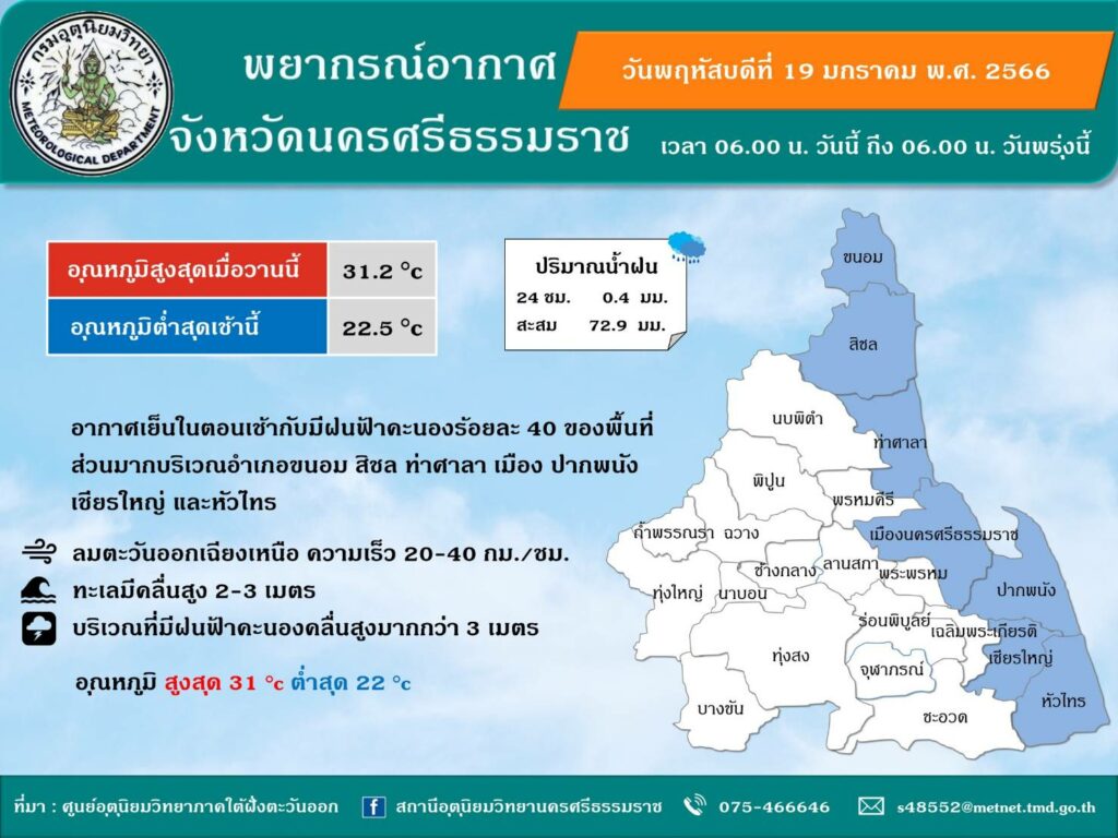 พยากรณ์อากาศ ประจำวันที่ 19 มกราคม 2566 พยากรณ์อากาศ / Samitanun Romvilas พยากรณ์อากาศ ประจำวันที่ 19 มกราคม 2566 Read More »