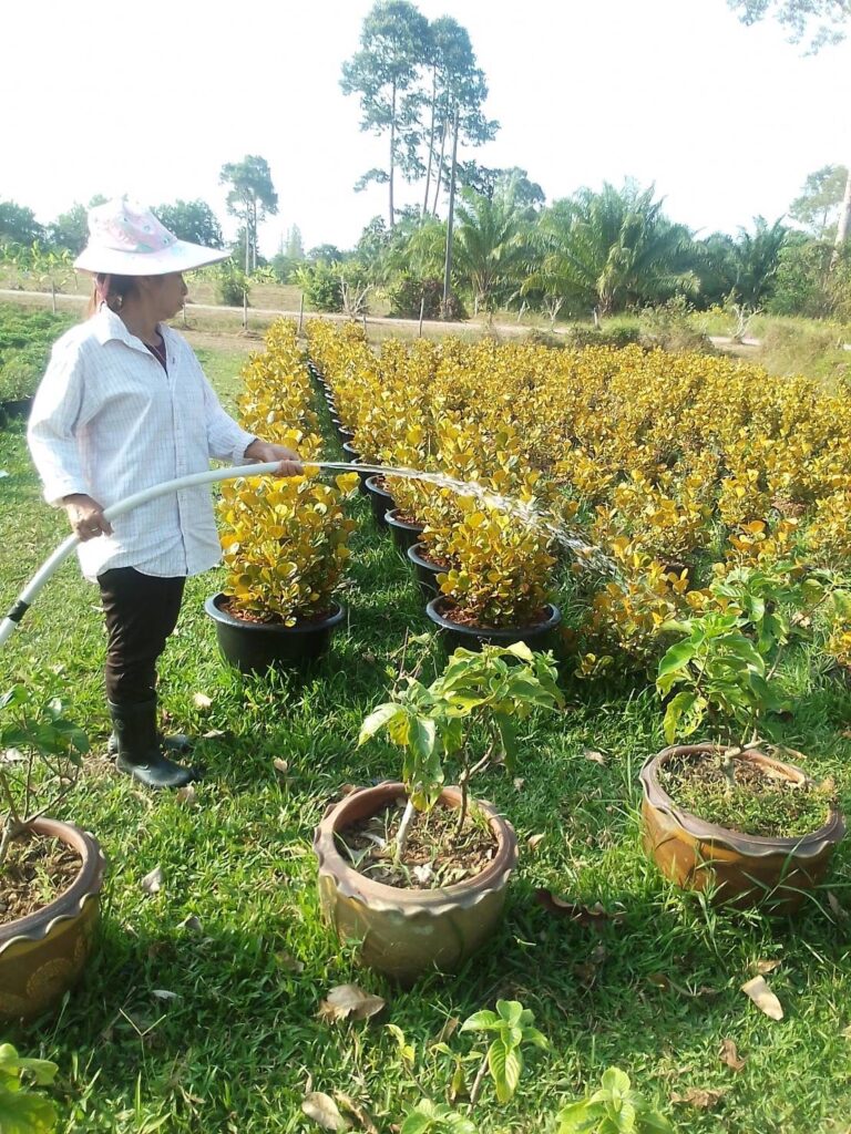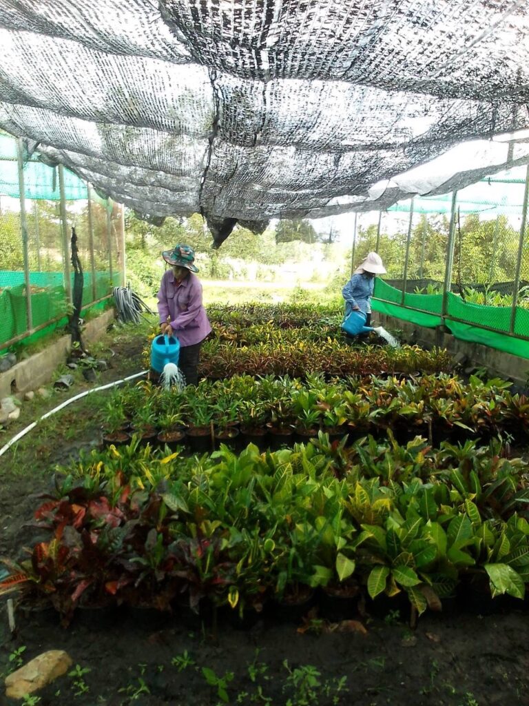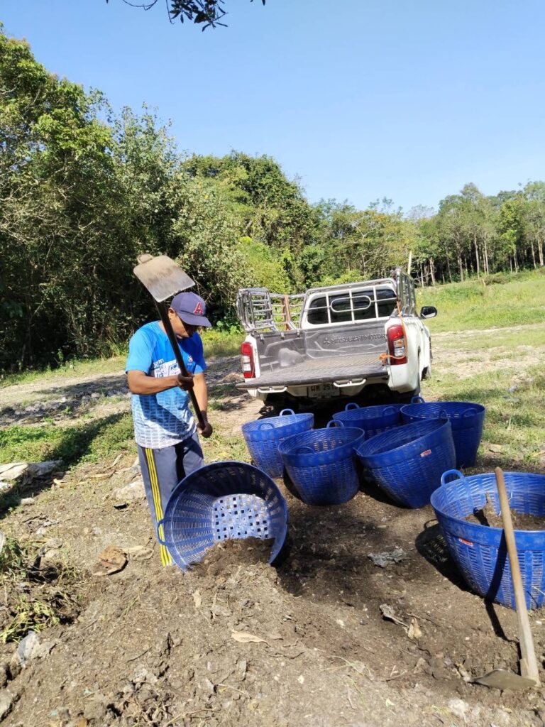 งานเพาะชำและปุ๋ยหมัก – ค้ำยันต้นมังคุดและเติมปุ๋ย