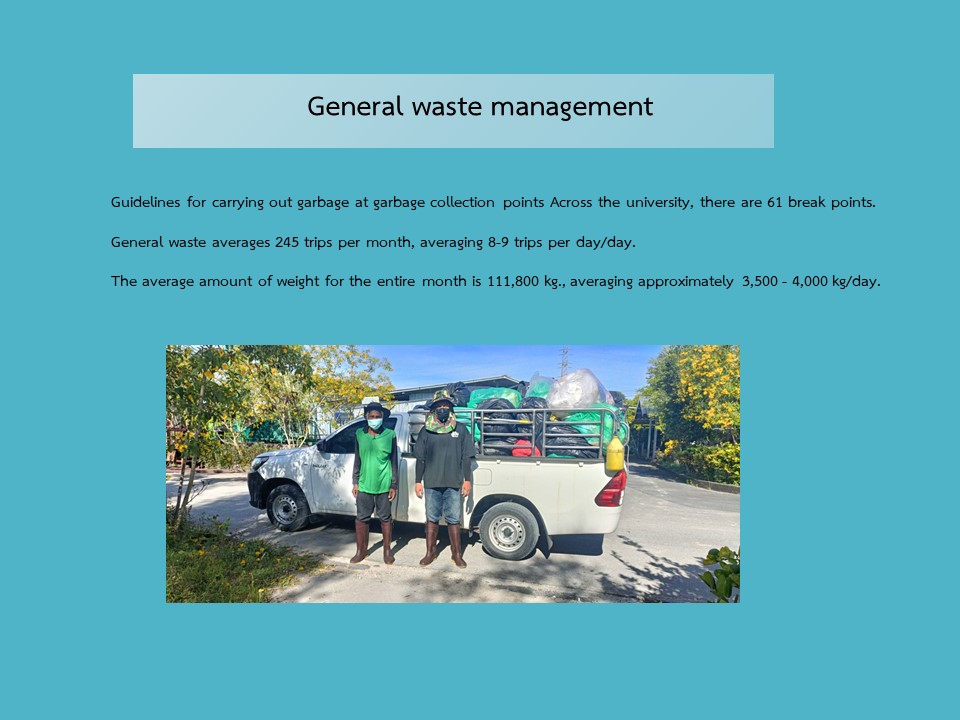 All 6 evaluation criteria: waste management Landscape architecture and environment section Walailak University There are no responsible details.