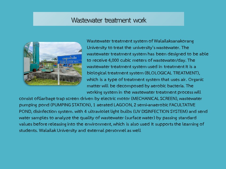 Waste management is located at the treatment pond building. (Opposite the entrance to Wat Saeng Rang) No. 222, Thai Buri Subdistrict, Tha Sala District, Nakhon Si Thammarat Province 80160