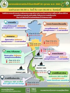 พยากรณ์อากาศ ประจำวันที่ 30 ตุลาคม 2565