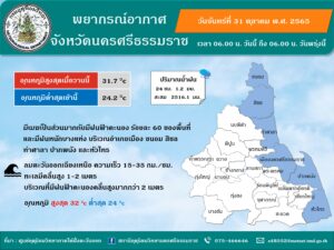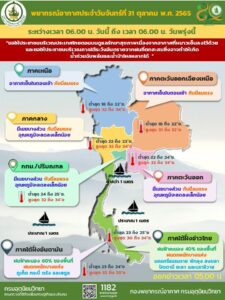 พยากรณ์อากาศ ประจำวันที่ 31 ตุลาคม 2565