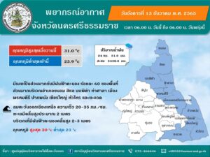 พยากรณ์อากาศประจำวันที่ 13 ธันวาคม 2565