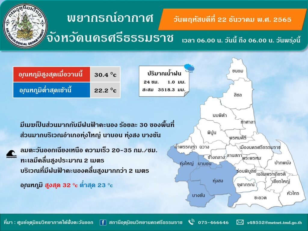 พยากรณ์อากาศ ประจำวันที่22 ธันวาคม 2565