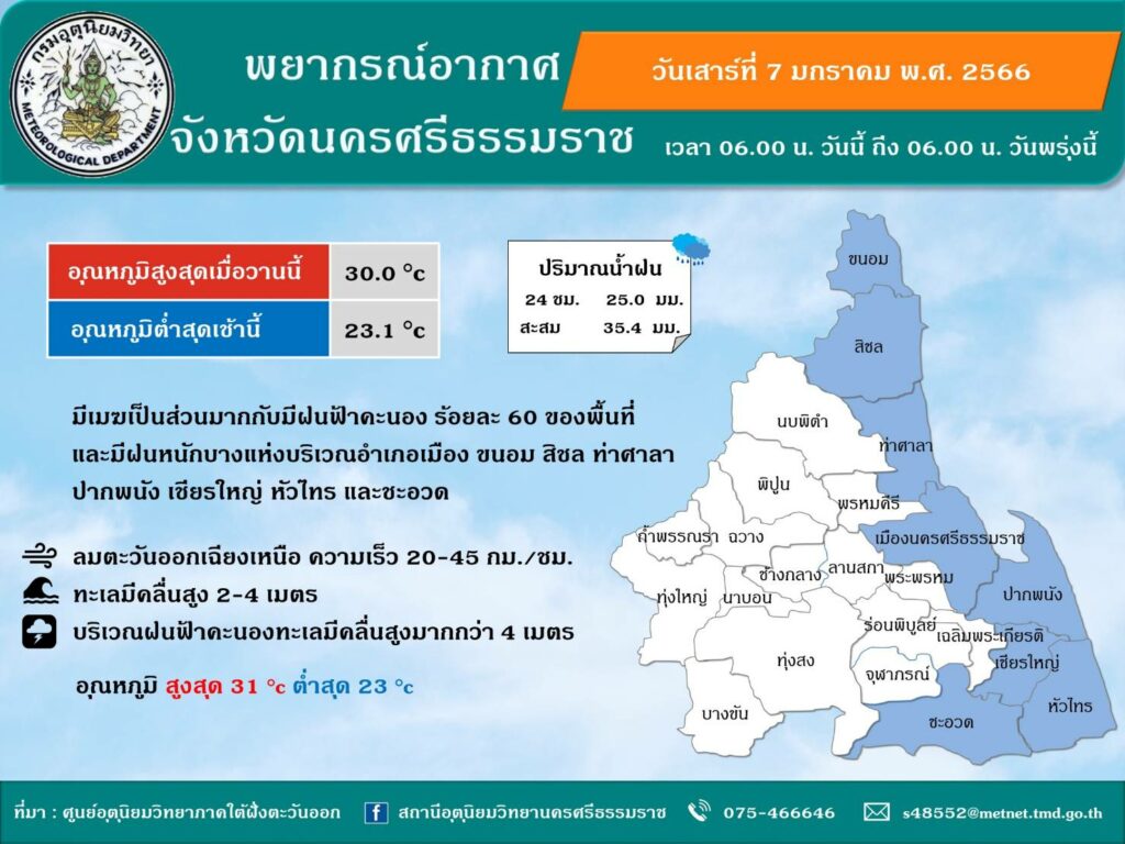 พยากรณ์อากาศ ประจำวันที่ 7 มกราคม 2566
