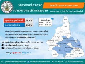 พยากรณ์อากาศ ประจำวันที่ 13 มกราคม 2566