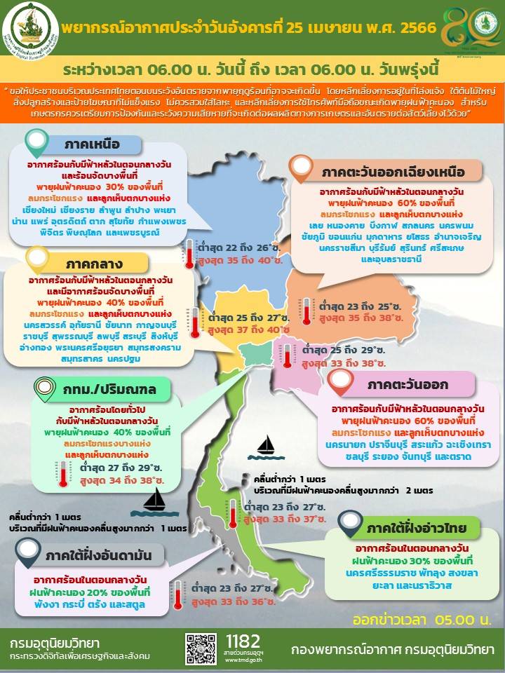 พยากรณ์อากาศ ประจำวันที่ 25 เมษายน 2566