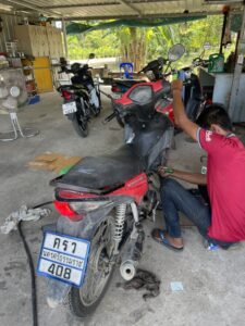 30 เมษายน 2566 นายช่างซ่อม ตะลุยงานซ่อม ณ โรงซ่อม / งานซ่อม / By Samitanun Romvilas นายช่างซ่อม ตะลุยซ่อมงานตามรายการดังต่อไปนีั ณ โรงซ่อม 1.งานบำรุงรักษา – รถแทรกเตอร์ L3408 – ซ่อมสลักยึดเพลาหัวเกียร์สกีตัดหญ้า 1.2 เครื่องปั้มน้ำ (โรงเพาะชำ) – ตรวจเช็คปั้มน้ำ 1.3 รถจักรยานยนต์ ครว 408 (ส่วนบริการกลาง) – เปลี่ยนลูกยางพักเท้า – เปลี่ยนขาตั้งข้าง – เปลี่ยนสะแตนคู่ – เปลี่ยนที่พักเท้า